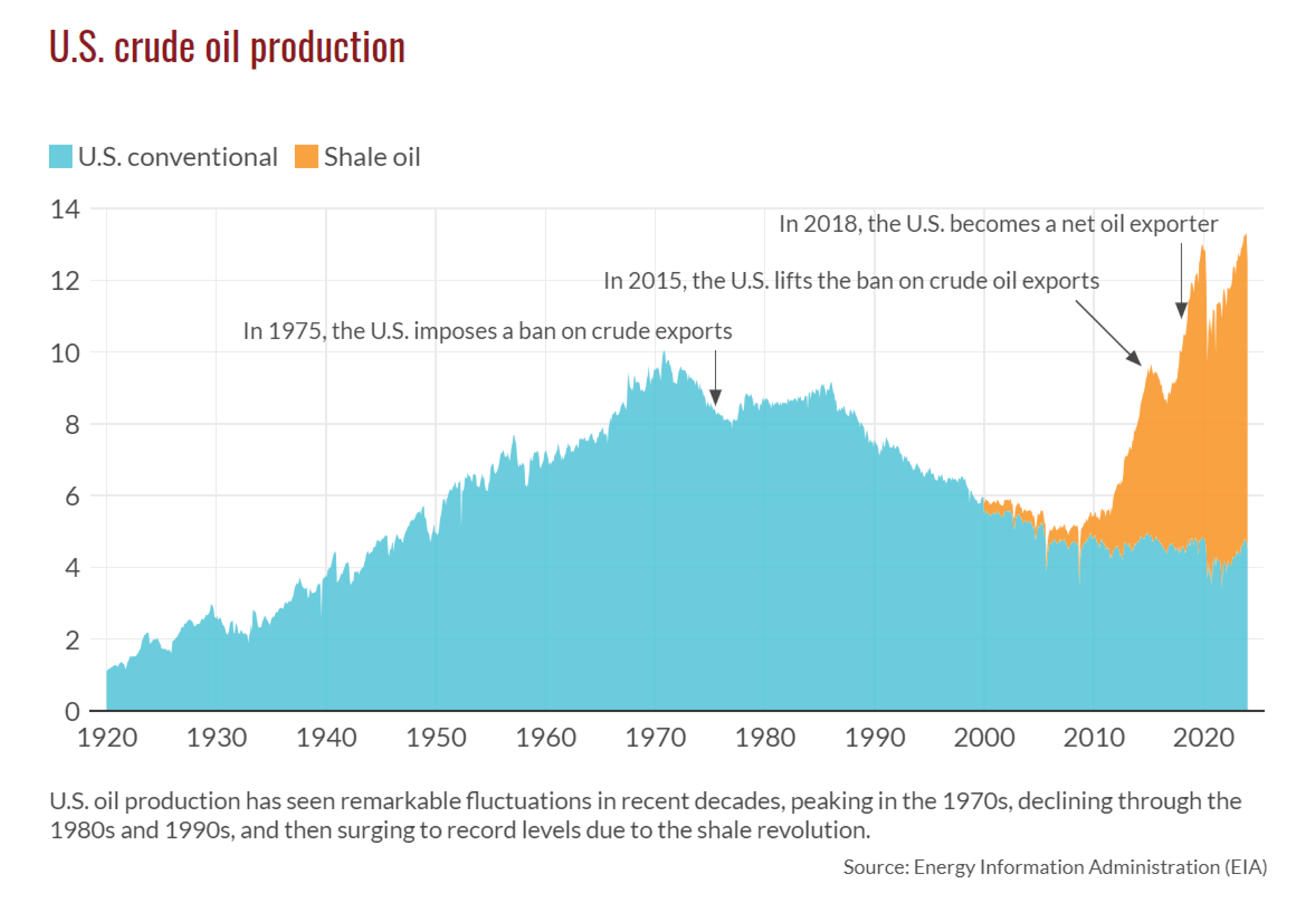 Oil adalah komoditas yang sangat terpengaruh akibat faktor geopolitik yang dapat berdampak pada keamanan energi nasional. Pada 7 November 1973, Presiden Amerika Serikat Richard Nixon mengumumkan Project Independence sebagai respon dari embargo minyak oleh OAPEC, tujuannya adalah “kekuatan dari kemandirian energi”. Maka pada tahun 2000 dimulailah Shale Revolution. Hal ini merujuk kepada drilling oil pada formasi-formasi dengan permeabilitas rendah, seperti shale dengan menggunakan teknik seperti hydraulic fracturing (fracking) dan horizontal drilling. Shale production mulai masif pada periode 2010-2014, didukung oleh beberapa faktor, stimulus (easing) dari central bank, kenaikan demand dari industri terutama china, dan kenaikan harga crude oil sehingga investasi shale oil menjadi sangat feasible. Hal ini juga menyebabkan terjadinya peak revenue dari banyak perusahaan yang berada pada sektor oil & gas. Hal ini tercermin dalam laporan keuangan perusahaan perusahaannya, hari hari yang indah bagi pelaku bisnis pada sektor minyak. Hal ini membuat harga oil bertahan pada average $95 per barrel selama 4 tahun.
