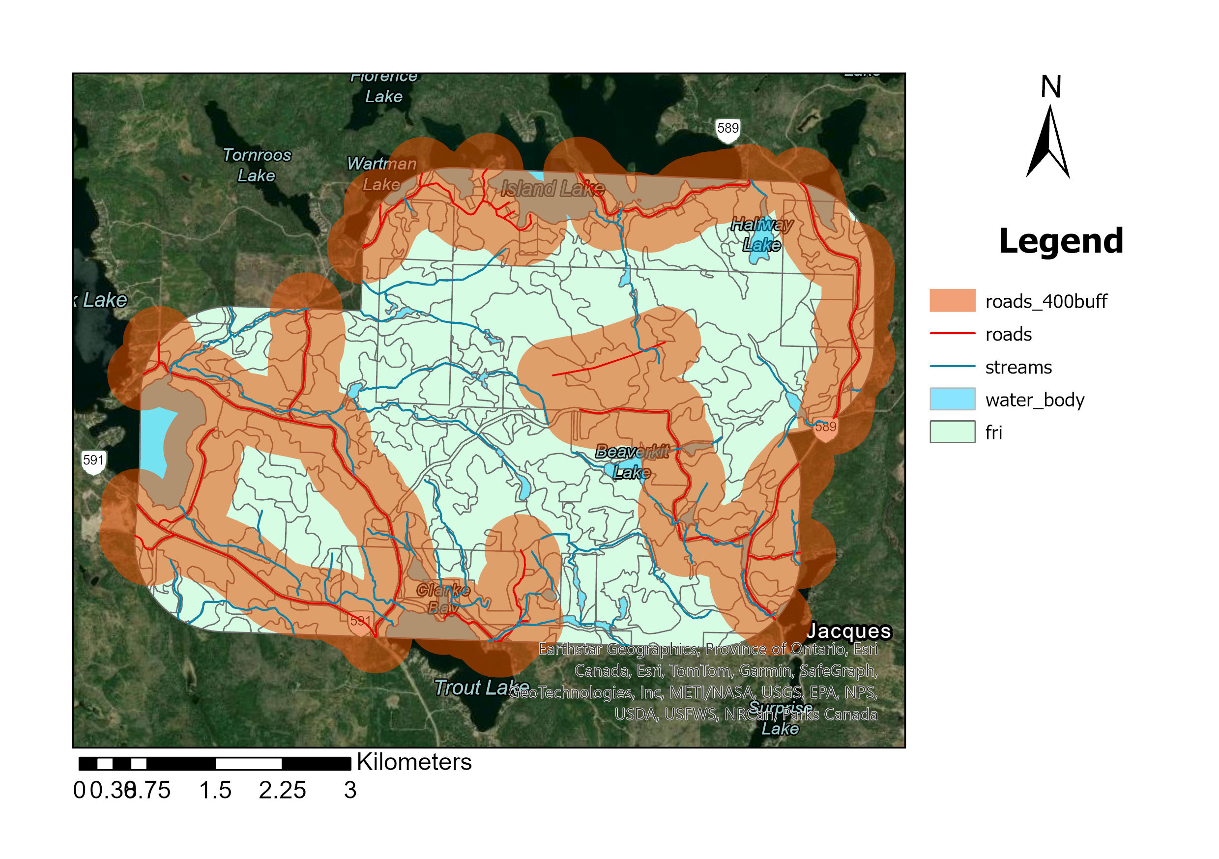 arcpy.analysis.Buffer("roads", buffer_output_name, f"{distance} Meters") # Buffer the roads feature class with the current buffer distance
